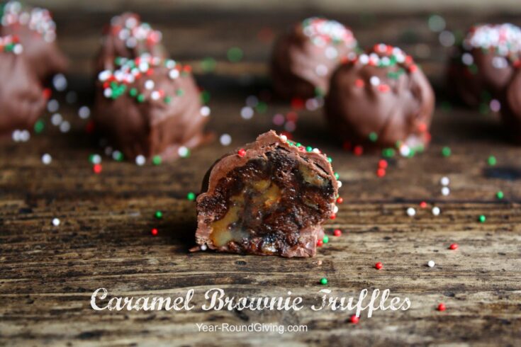 The Holiday season calls for more chocolate right? If you love chocolate then you will love these Caramel Brownie Truffles. Add some holiday colored sprinkles and these make a lovely gift.