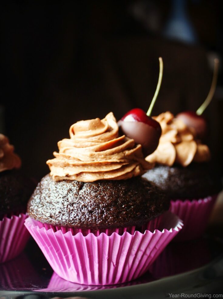 Chocolate Espresso Cupcakes with Chocolate Covered Cherries