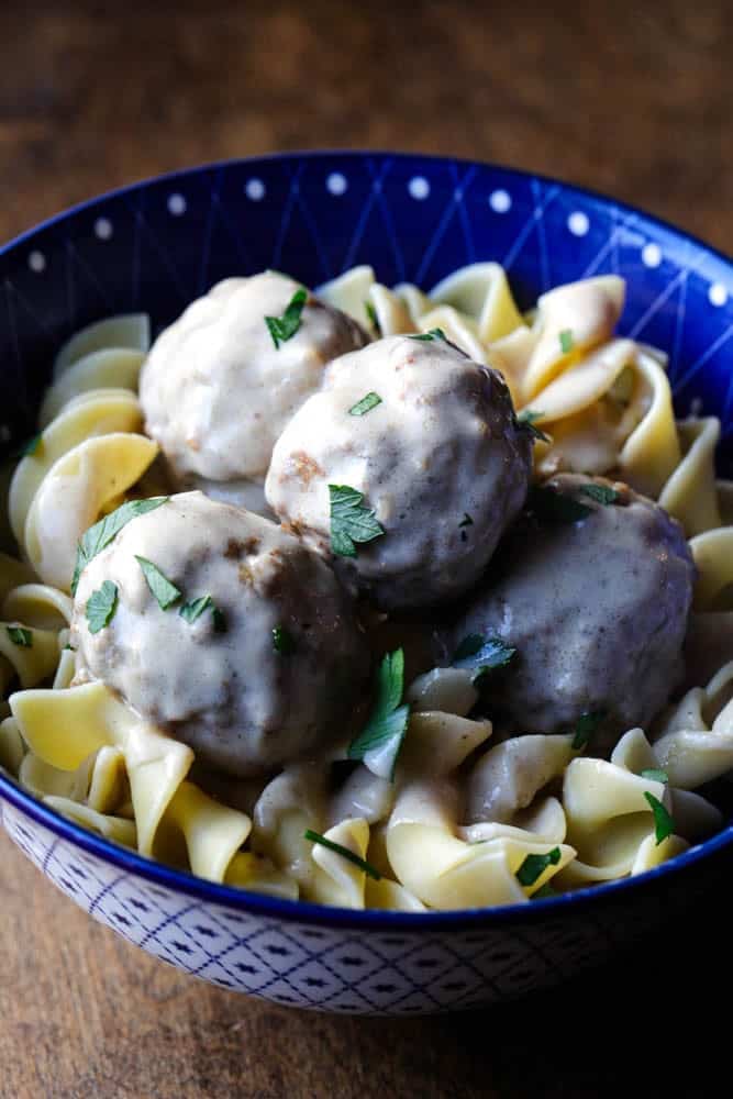 - Over egg noodles – The classic Swedish meatball pairing.