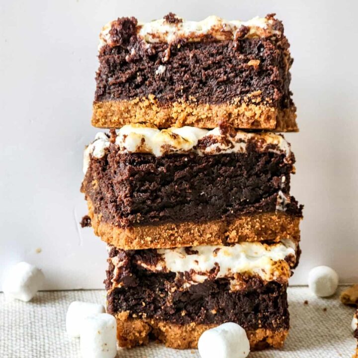 Enjoy the ultimate treat with these S’more Brownie Bars! Rich and fudgy brownies with a crunchy graham cracker crust are topped with gooey marshmallows.