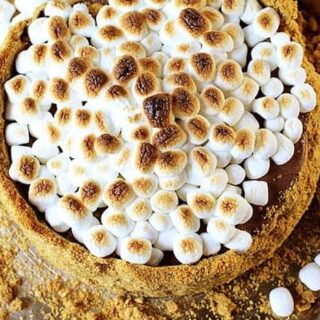 This delicious smores recipe comes with a graham cracker cookie crust, toasted marshmallows, and Hershey's Kisses - the perfect combination for any s'more lover.